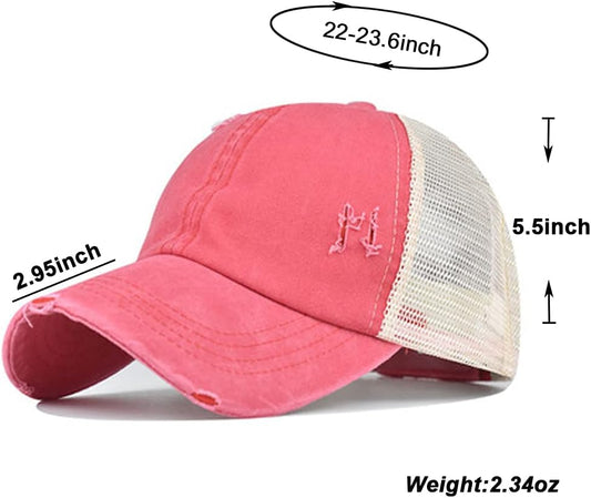 High Ponytail Baseball Cap for Womens Men Adjustable Dad Trucker Mesh Hat